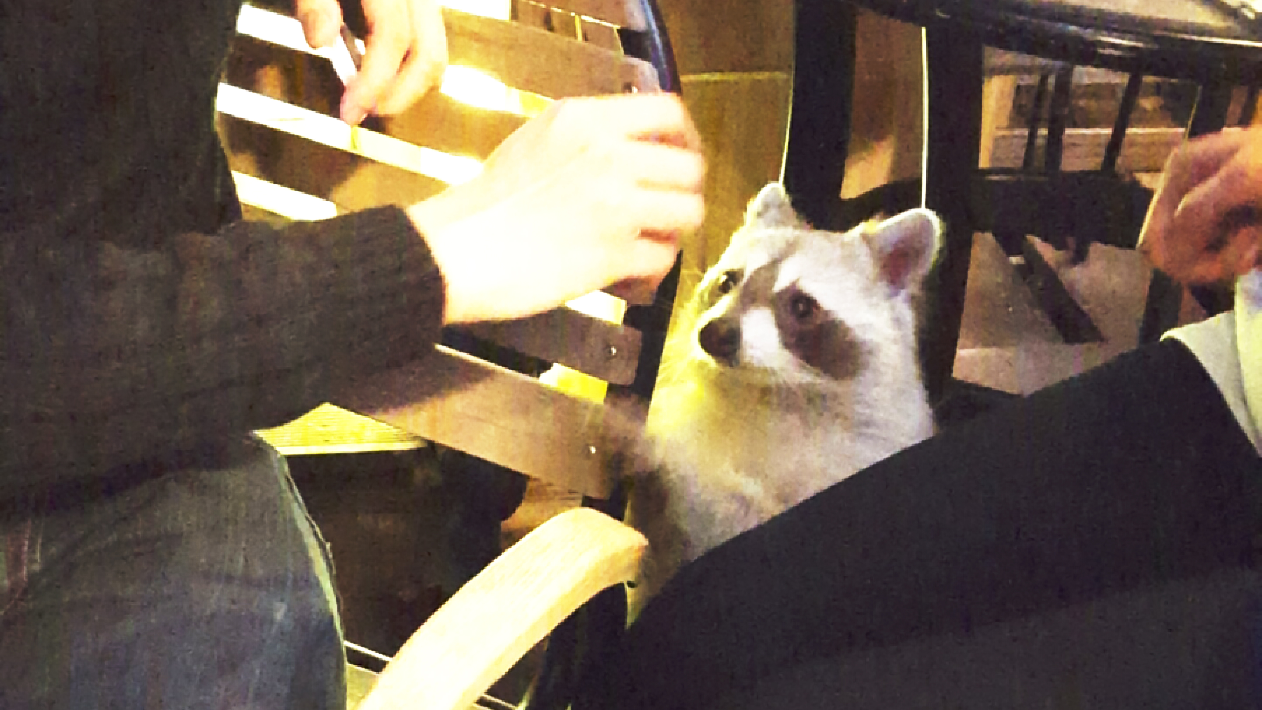 A few videos I watched in the past said that you don’t need to buy anything to play with the raccoons, but I think they changed their rules. Each person must buy one thing in order to see the raccoons. The drinks and food are a little expensive, but I’m hoping that some of the money is being used toward the upkeep of room where they keep the raccoons. Their room is pretty spacious and has a lot of toys and cubby holes for the raccoons to use.